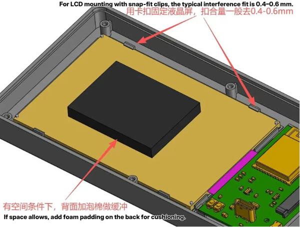 In the development of electronic products, we often need to position and fix LCD screens. There are display modules integrated with touch screens, as well as separate fixation structures. Here I’ll share several types of separate fixation methods and their key design details.