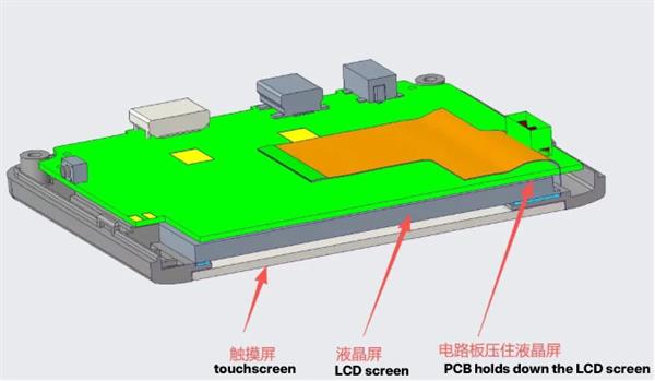 For this method, the LCD screen is usually equipped with positioning posts on its back. Meanwhile, there should be no electronic components on the contact surface between the PCB board and the LCD screen, and a foam pad is highly recommended for cushioning between them.