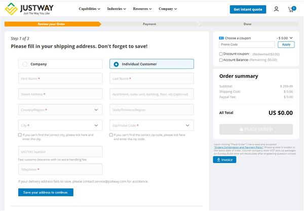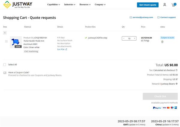 Purchasing custom parts at justway.com is easy at your fingertips. A couple of steps make you enjoy Rapid Prototyping services, affordable yet high quality.From prototypes to end parts, it faster & easier to order custom prototype parts for CNC machining, 3D printing, injection molding, and urethane casting. Get an instant quote.