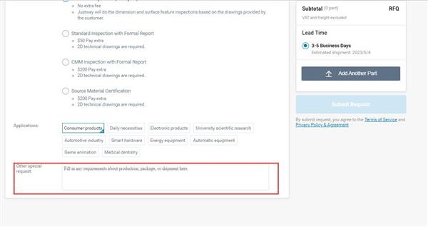 Fill in your requirements in "Other Special request" or